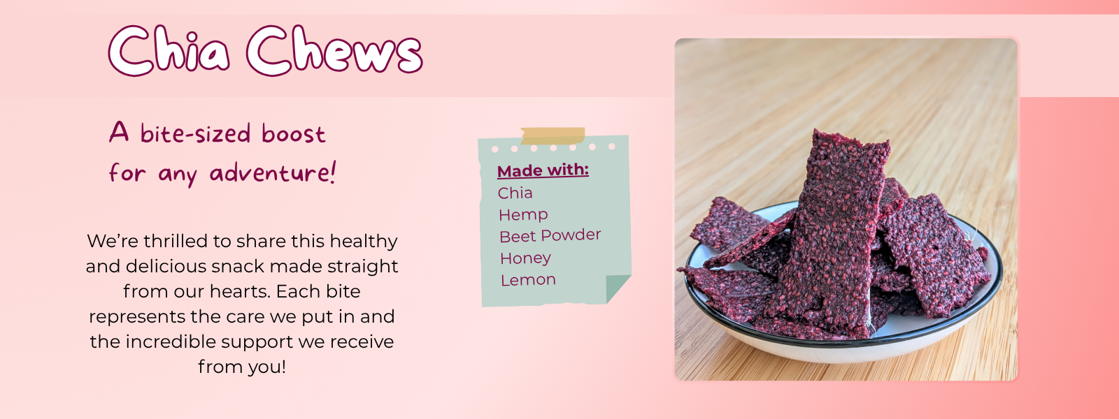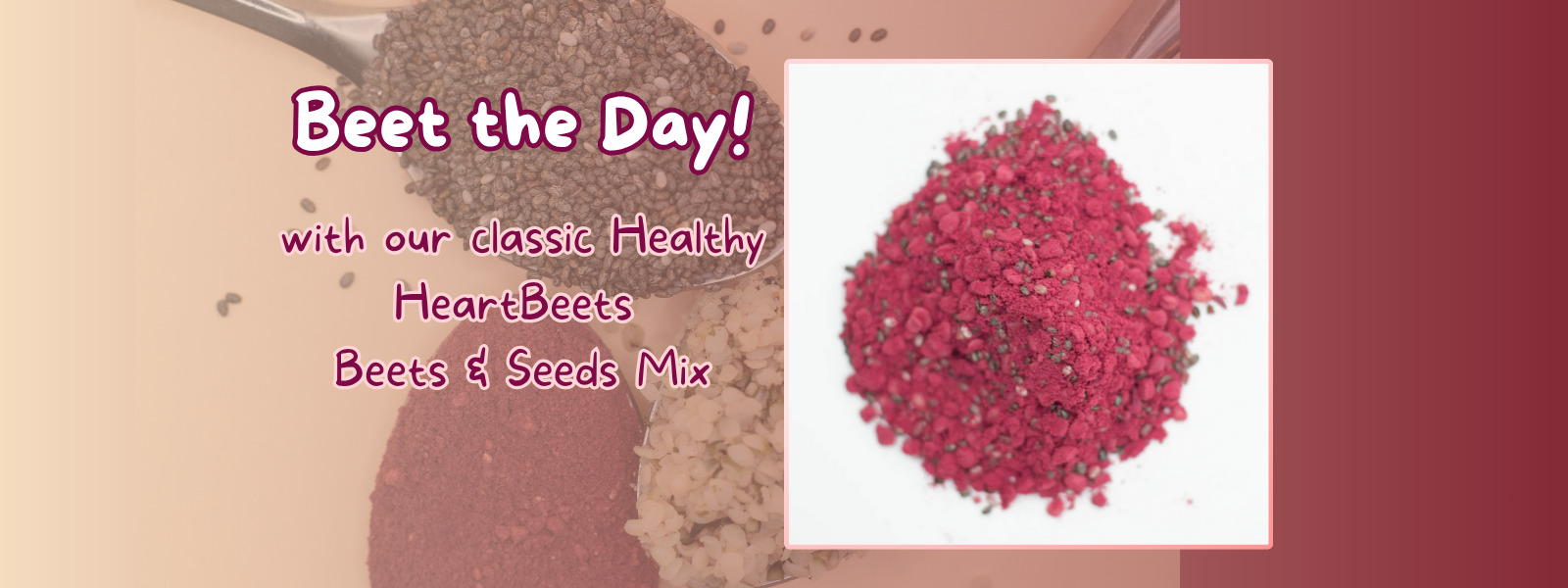 Healthy Heartbeets Power Mix is a blend of Chia seed, Hemp seed and Beet powder that promotes healthy choices. Bringing you a convenient way to intake nutrition on our daily lives.